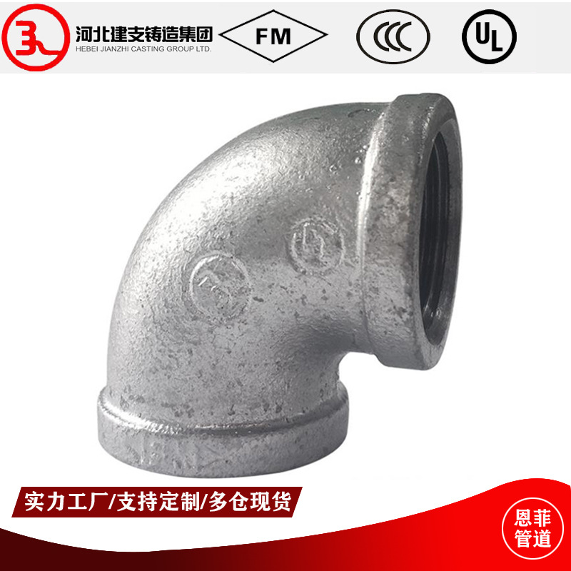 Цзяньзима стальные трубы детали оцинкованные локоть 45 ° 90 ° газовый бой борт FM FM UL Диаметр npt rc rc