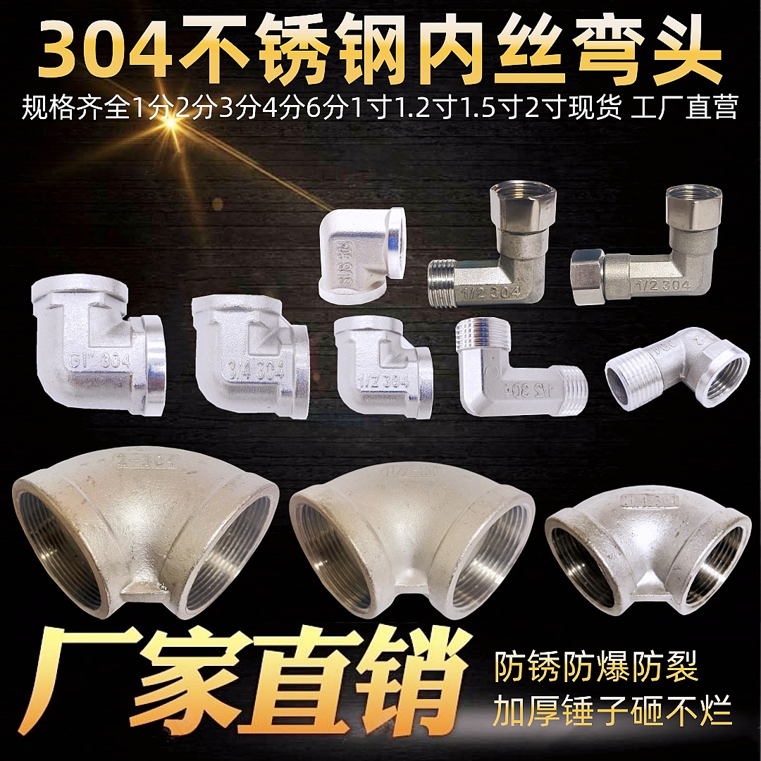 2346分1寸304不锈钢弯头15不锈钢内外丝弯头324050不锈钢变径弯头