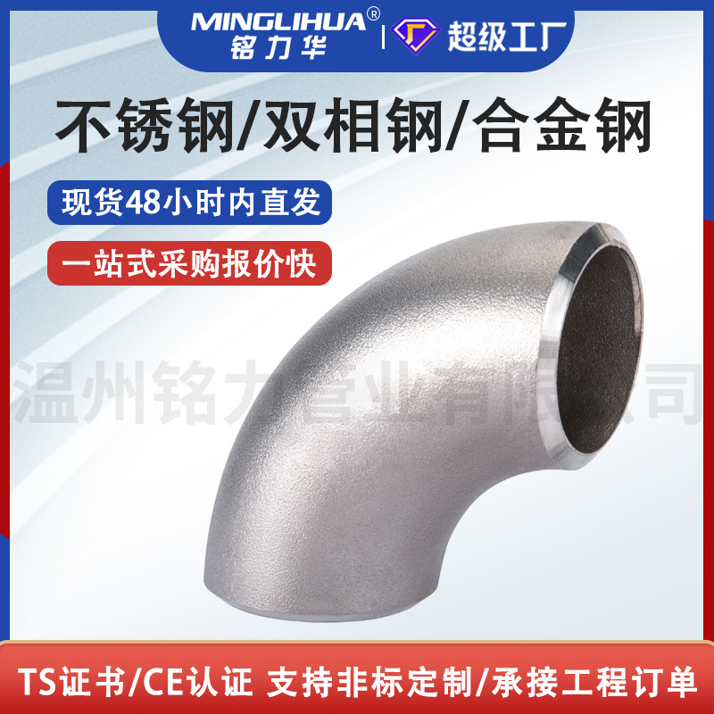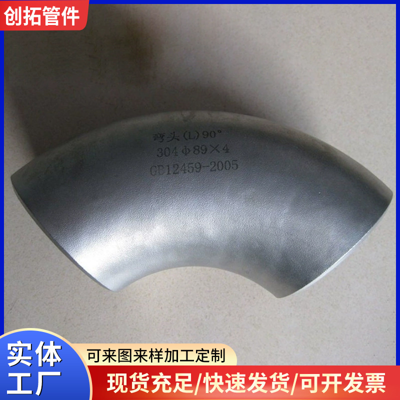 304/316L冷压工业级不锈钢弯管长半径1.5DLR无缝国标对焊90度弯头