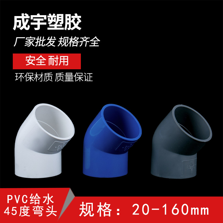 Утолщенное изделия из ПВХ водоснабжение 45 ° Количковые фитинги.