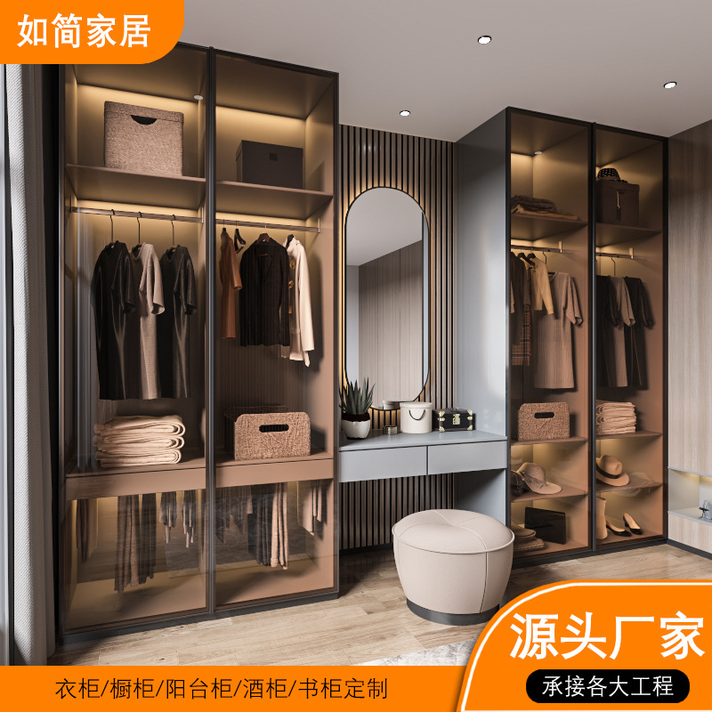 如简家居 Pingkai Door Wardreobe Open Cloakroom Алюминиевый шкаф спальня современный металлический стеклянный шкаф