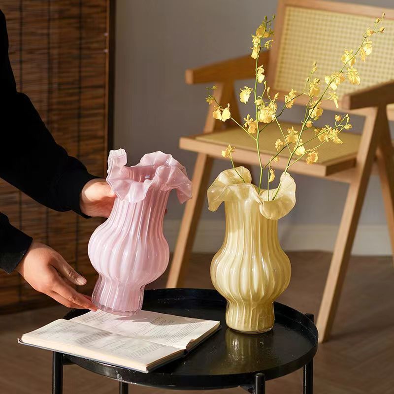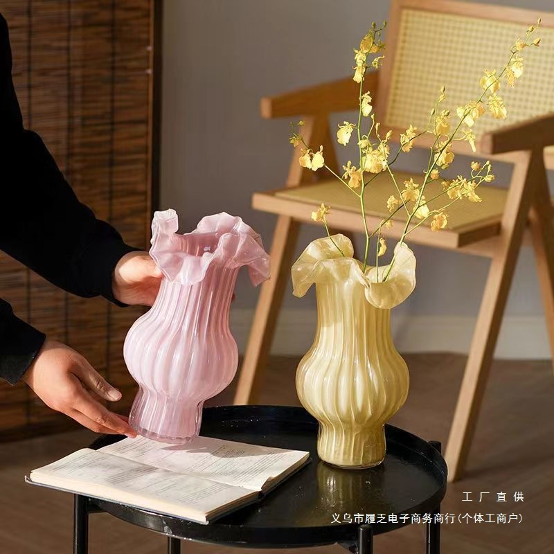 YP Высокое чувство средневекового искусства стеклянная ваза ретро-орнамент прозрачная цветочная композиция вода питательный обеденный стол Большой крем для живота