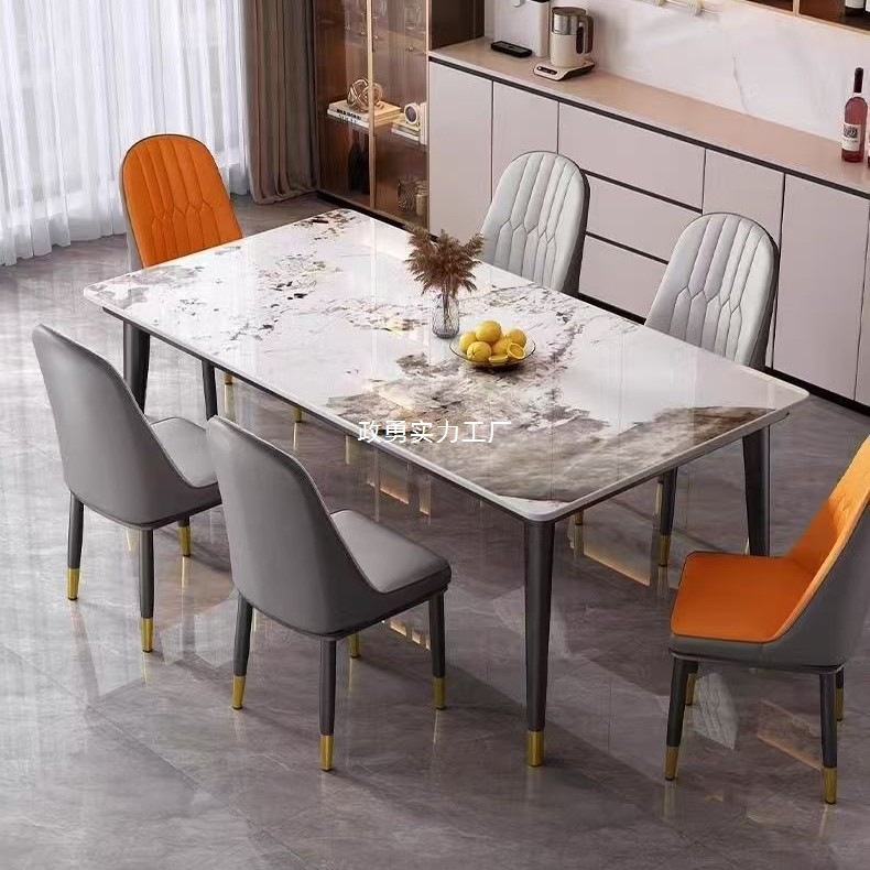 Легкая роскошная рок -плита Light Luxury Modern Simple Homeving небольшая квартира Простая итальянская минималистская столовая гостиная и комбинация стула