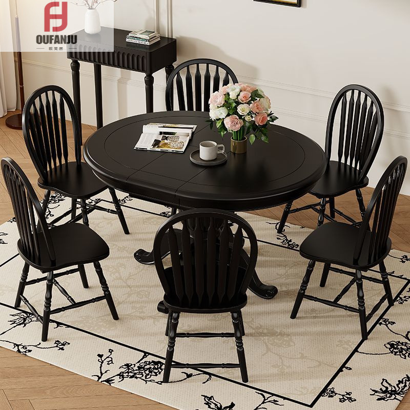 Американская резное бревенчатое обеденное стол Light Luxury Modern Simple Black Square Table French Retro Solid Wood Vertangle прямоугольник