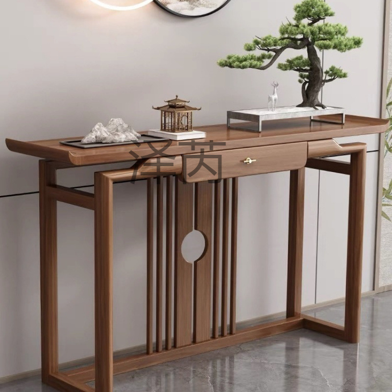 旭鹫 Новый китайский стиль сплошной древесины вступительный стол Zen вход в стиль к стене узкий входной стол.