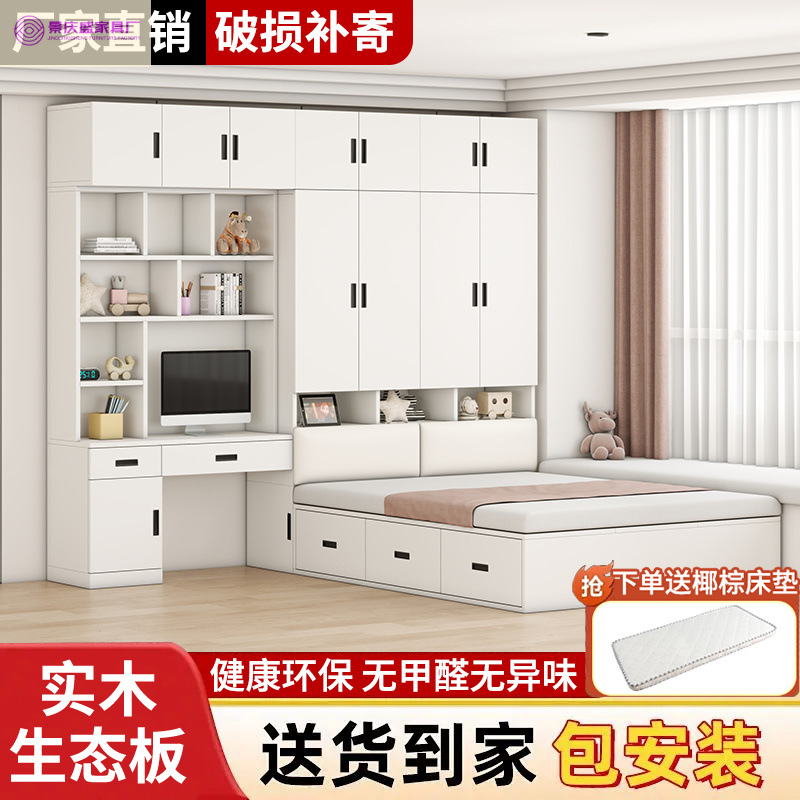 Кровать с твердым деревом татами интегрированная домашняя спальня детская шкаф