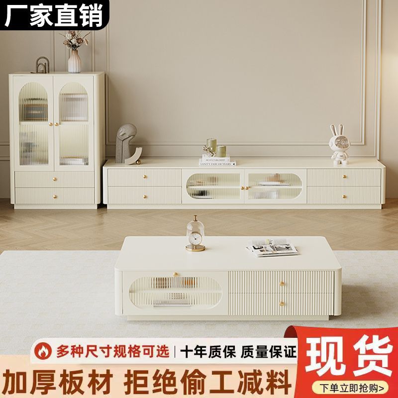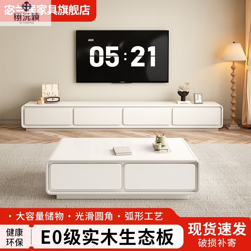 2025 новый шкаф для телевизора из чистого массива дерева, простой современный журнальный столик, комбинация кремового стиля, белый, большая квартира, гостиная в минималистском стиле