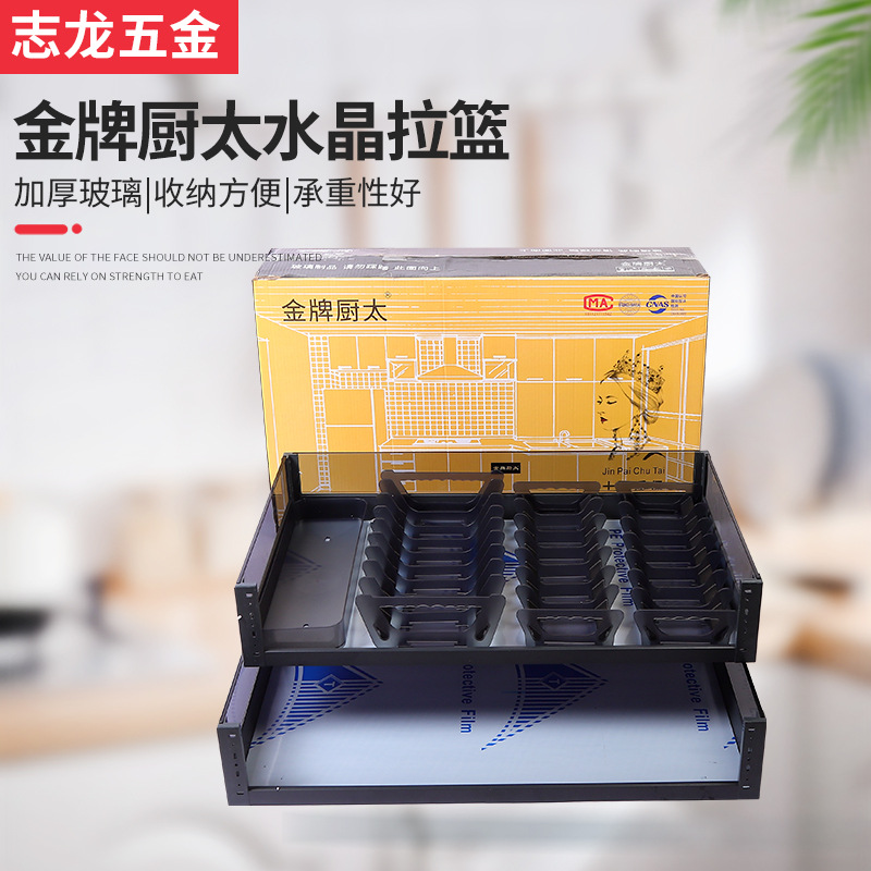 金牌厨太 Хрустальная корзина, корзина для кухонного шкафа, стеклянная корзина, двухслойная корзина с выдвижным ящиком.