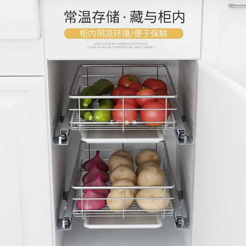 四季沐歌 Высасываемая корзина кухонные шкафы Высококачественная нержавеющая сталь двухслойная ящика типа чаши для хранения стойки для хранения стойки для хранения стойки для хранения каша