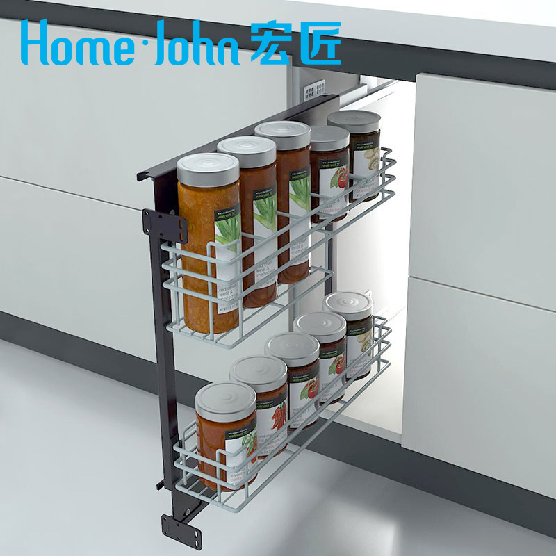 [Маленькая оптом] Кухонная приправа приправа корзина алюминиевого сплава ящик сплав открыт дверь Открытие универсальной перегородки.