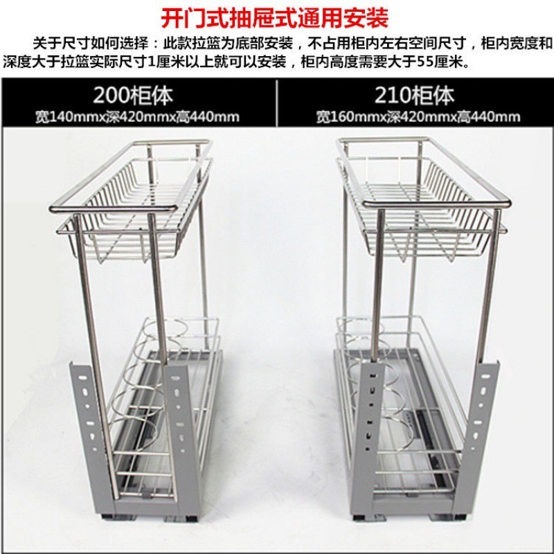 Приправа корзина 200 шкафа кухня приправа из нержавеющей стали стальной полки двойной кухонный ящик для хранения ящика от кухни синий