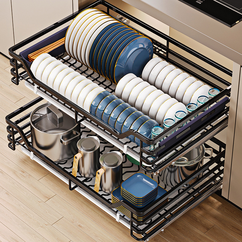 Эрмала корзина кухонная шкаф приправы 304 из нержавеющей стали двойной слой посуды