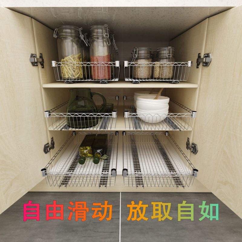 Потягивание корзинского кухонного шкафа телескопическое освобождение, установка без ударов, раковина, раковина, приправа для хранения, стойка приправы