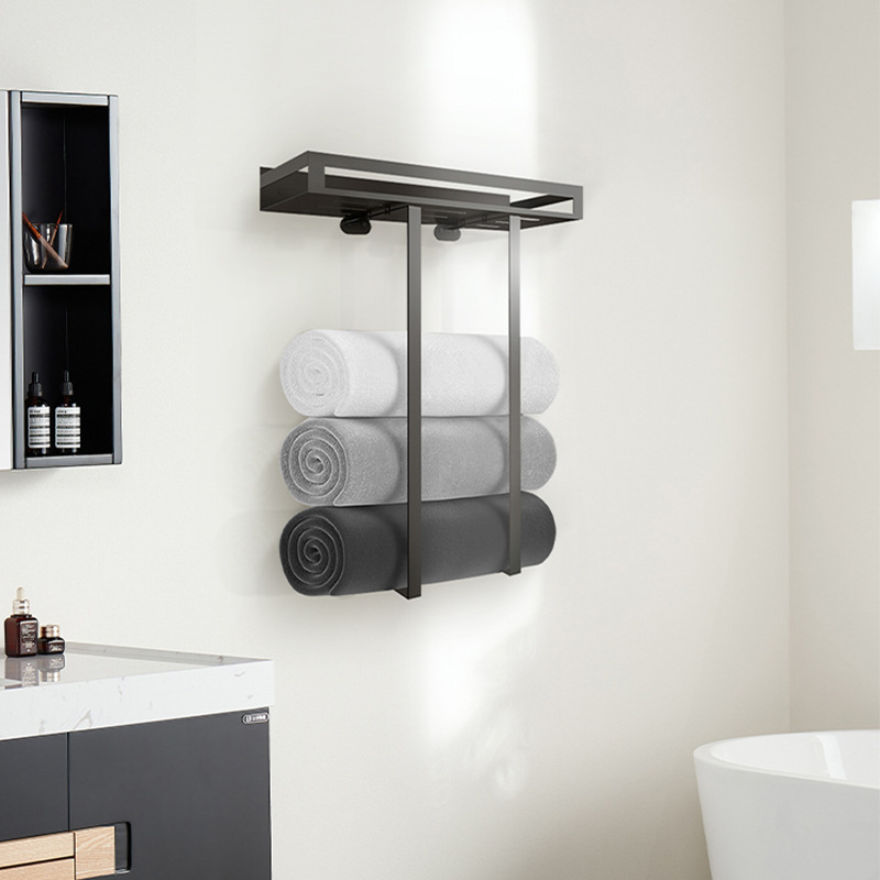 Сетка для полотенец в ванной комнате серый двойной полюс, чтобы не ударить туалетные полотенца, космические алюминиевые легкие роскошные ванные полотенца