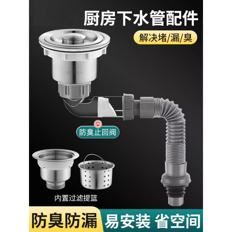 Кухня 304 из нержавеющей стали бассейн бассейн Одинокий полный набор водоснабжения Антиодорные дренажные трубы набор заводской заводской завод