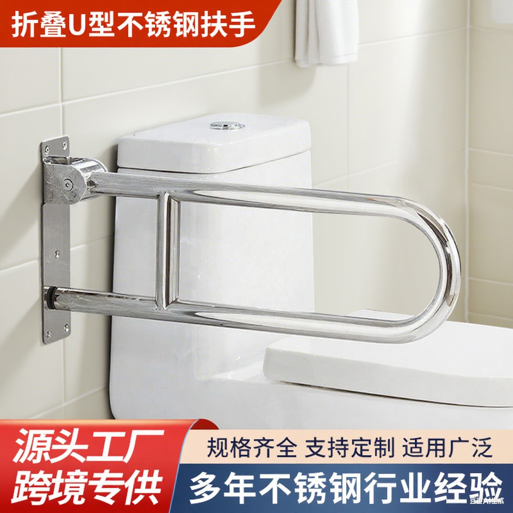 Складные U-образные поручни из нержавеющей стали, туалетные поручни для пожилых, складываемых и толстых без барьеров.