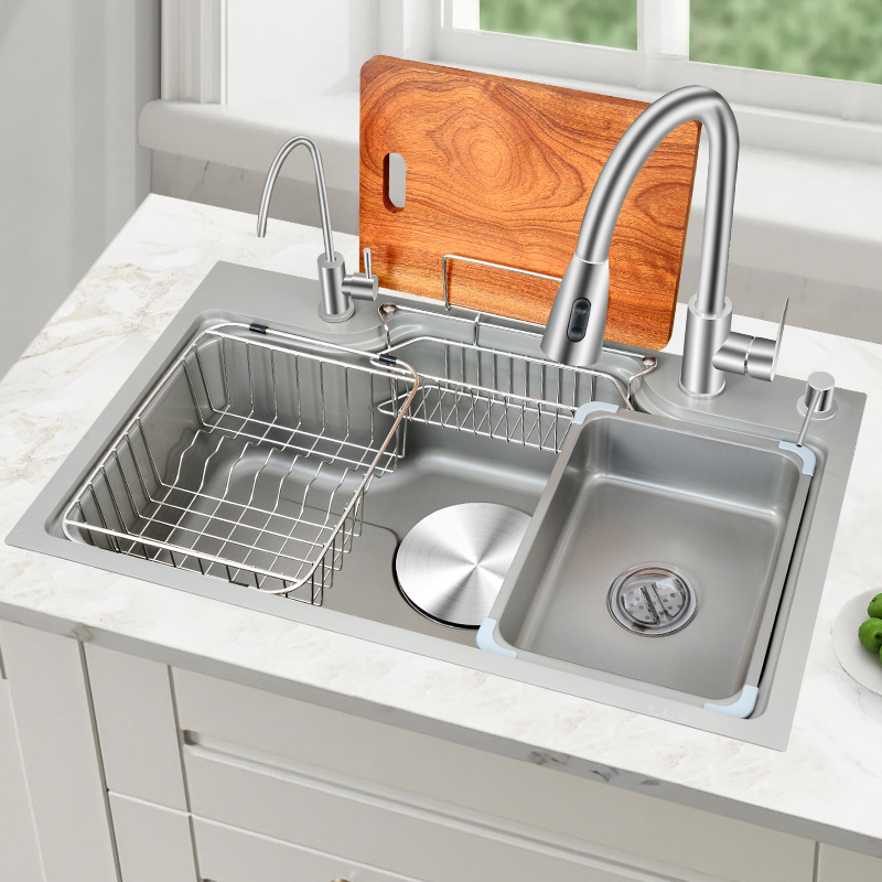 Кухонная раковина с одним слотом супер большую промывшую миску для мытья миска для мытья пруд 304 Крайство из нержавеющей стали все