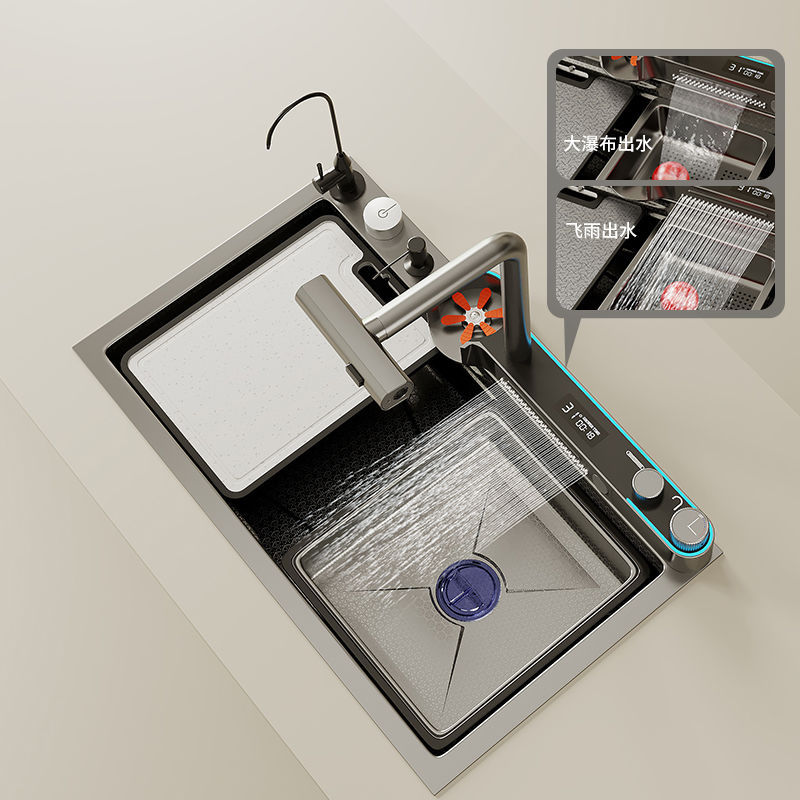 Домашняя кухонная раковина летает дождь водопад набор из нержавеющей стали, накачиваемое, серая серая, мыть