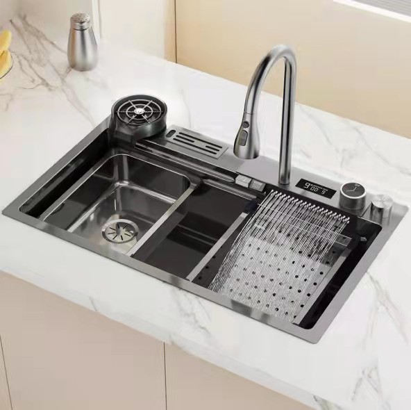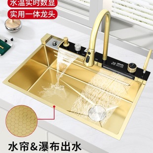 Cross -Bordder Light Luxury Gold Waterfall Waterfall Интеллектуальное число показывает, что бак для воды 304 из нержавеющей стали Honeycomb Press Kitchen Basin