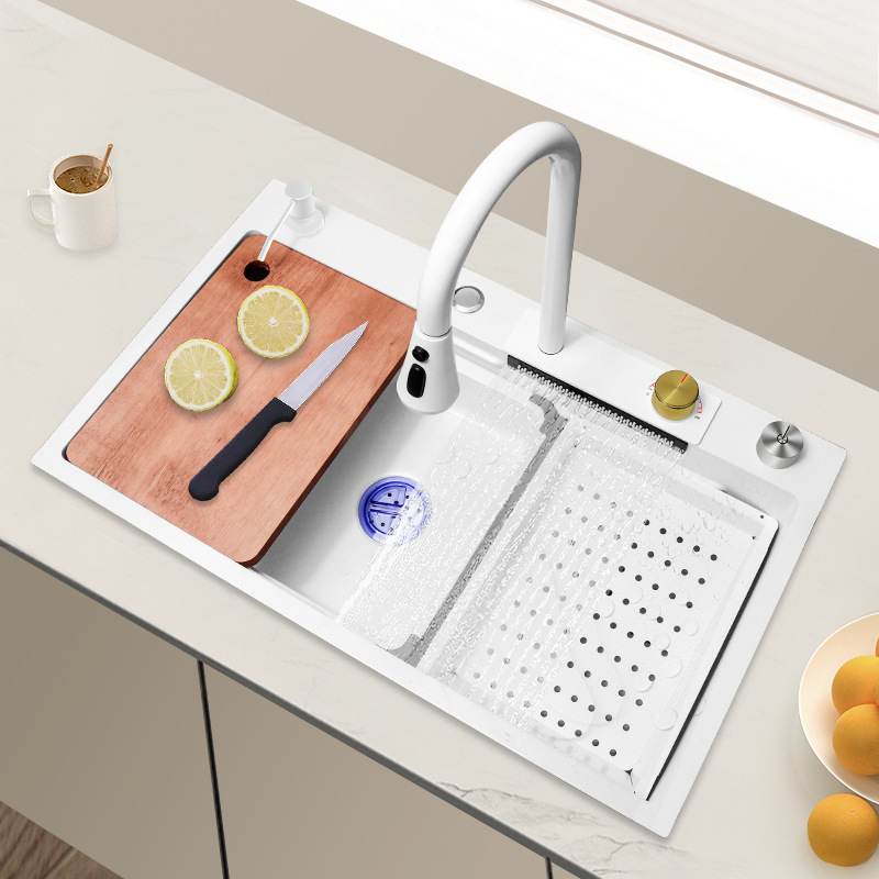Feiyu Waterfall Waterfall Одинокий бак белый нано 304 из нержавеющей стали кухонный бассейн промыв