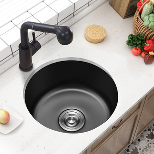 Черный нано -круговой труба мини -слот 304 раковина из нержавеющей стали кухня для мытья бассейн под платформой Среднего острова