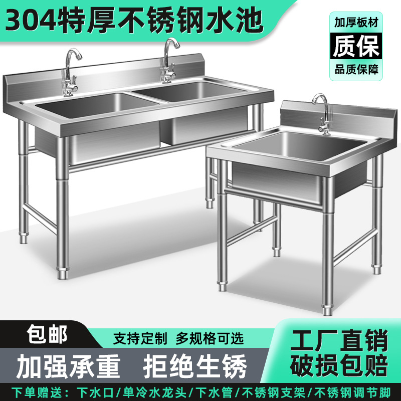 304 лишняя толстая раковина из нержавеющей стали. Одиночная двойная трехплатформенная раковина Домохозяйственная коммерческая мытья посуда и растительный бассейн
