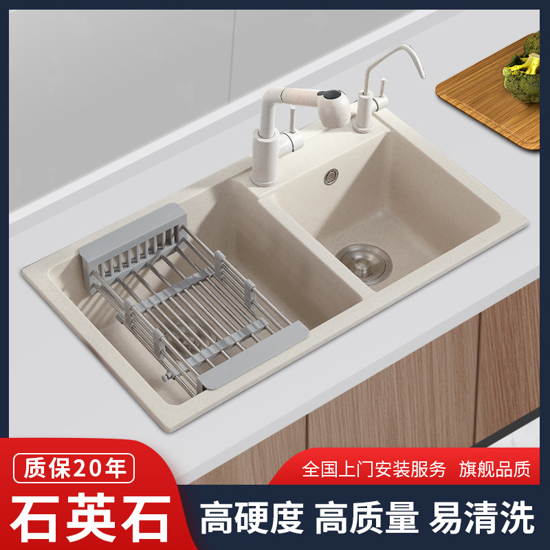 Заводская кварцевая каменная раковина с двойным кухонным стирным бассейном Упаковочный бассейн