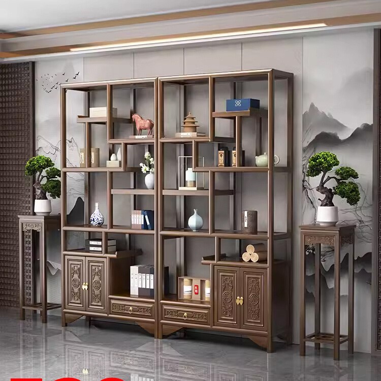 Новый китайский твердый древесина Bogu Shelf китайский книжный магазин Light Luxury Wood Выставка выставка перегородка Duobaoge полки чай