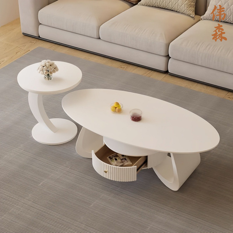 Метовой столик кремовый стиль каменной доски чайный стол овальный журнальный столик домохозяйство гостиная небольшая квартира простые заводские прямые продажи =
