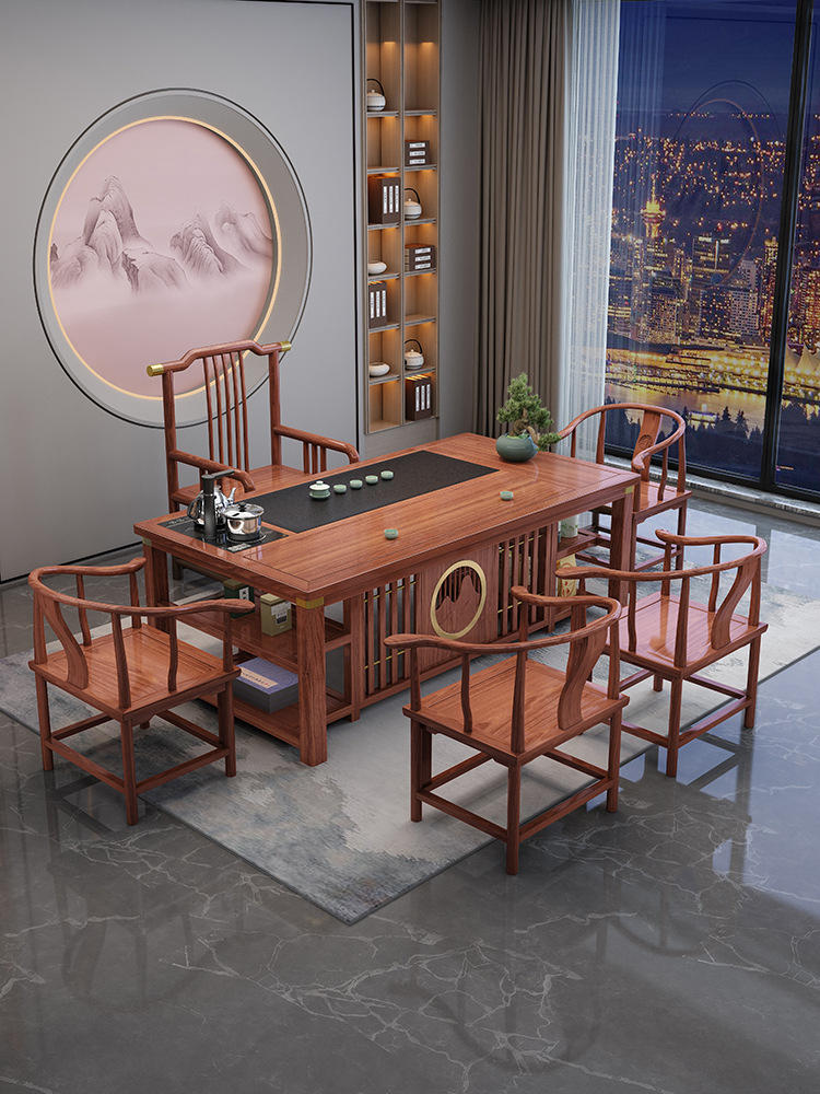 Чайный стол офис чайный пивоварение с твердым деревянным столом и стул Комбинирование нового офисного набора интегрированного дома на балконе небольшой кунг -фу Стол