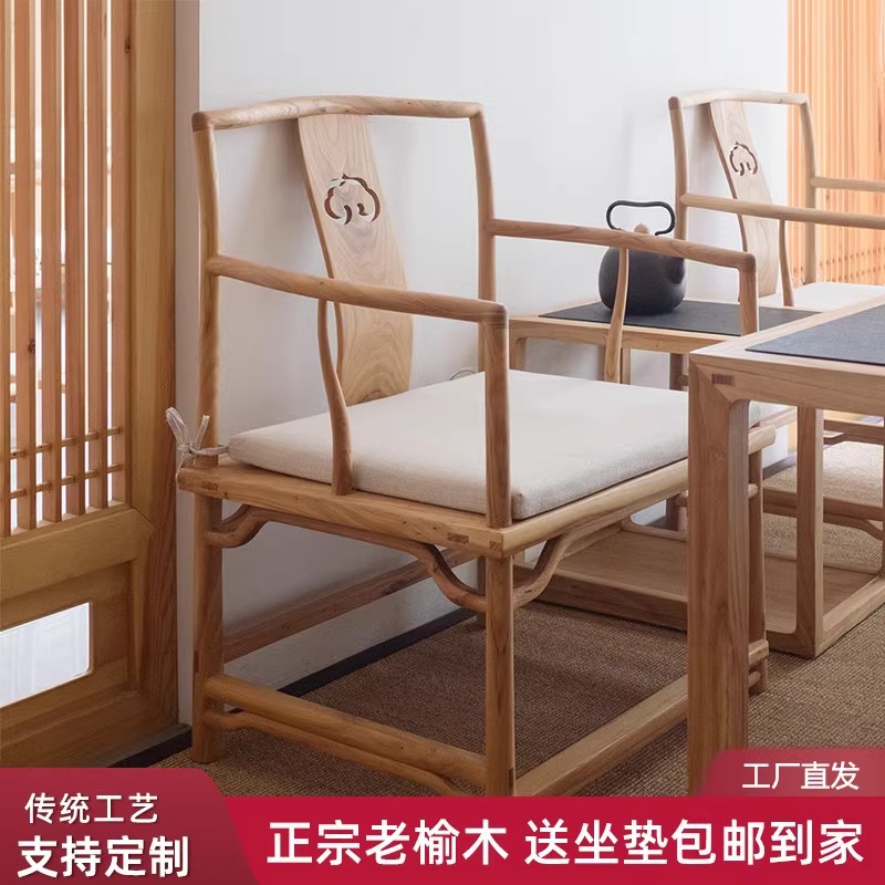 ♤ Стул Старый Вяз Кольм Новый китайский стиль с твердым деревом.