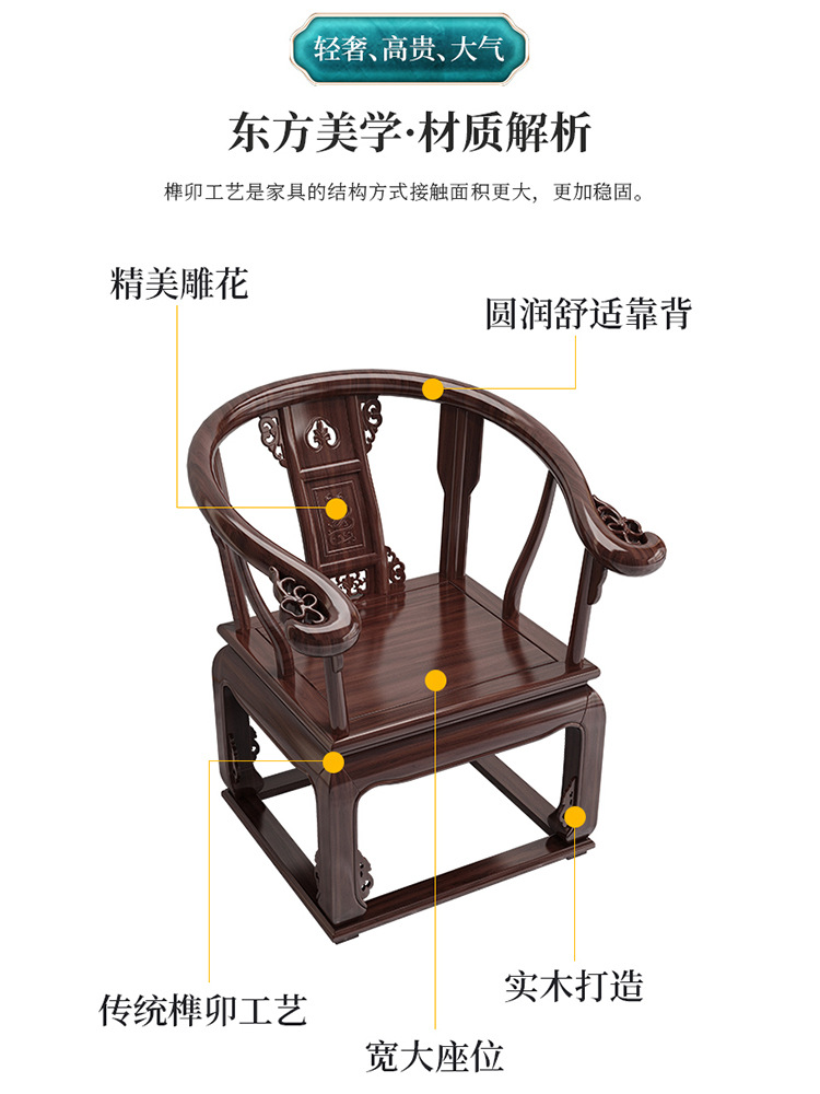 Новый китайский стиль сплошной древесины, кресло из дерева Южного Весота, кресло для рога, стул кольца, стул с тремя частями, официальное кресло для стула для шляпы Q &