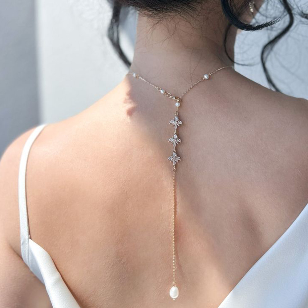 Новая европейская и американская сдача воды, модная простая ожерелье для страза, универсальные свадебные аксессуары для женщин, Back Chain06