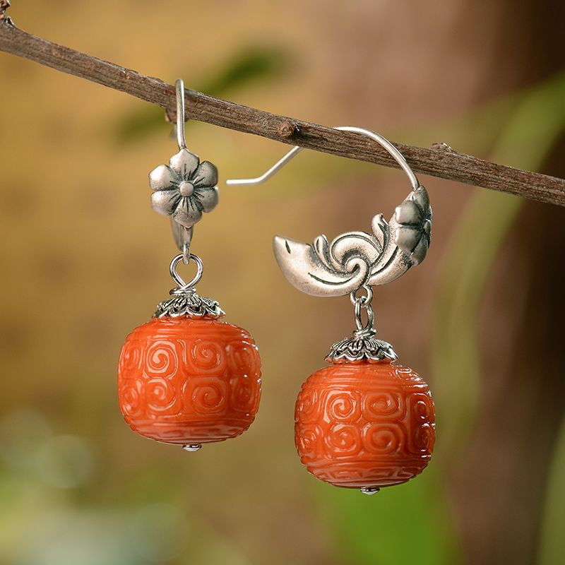 Агатовые ретро серьги, китайский стиль