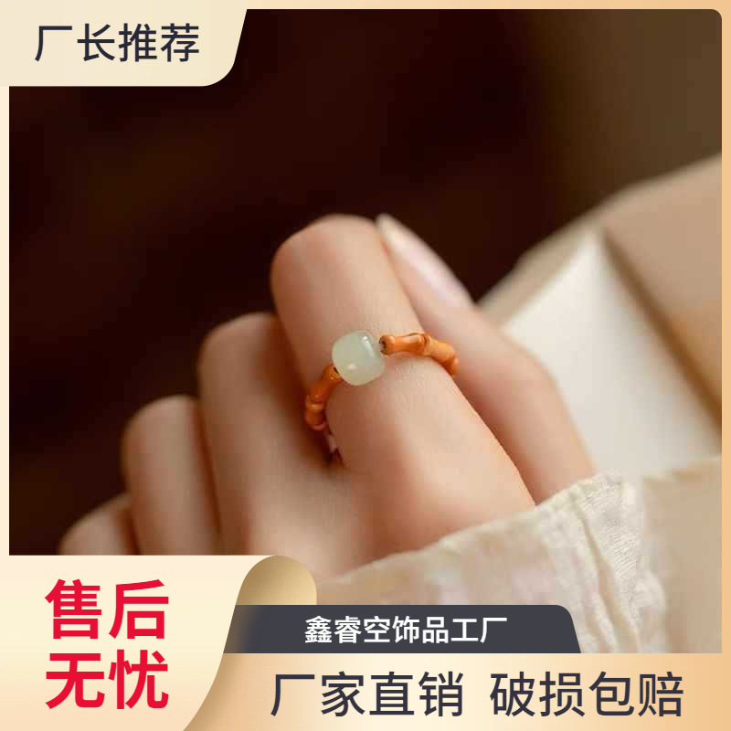 Небольшое дизайнерское бамбуковое кольцо из нефрита, оберег на день рождения, цвета киновари