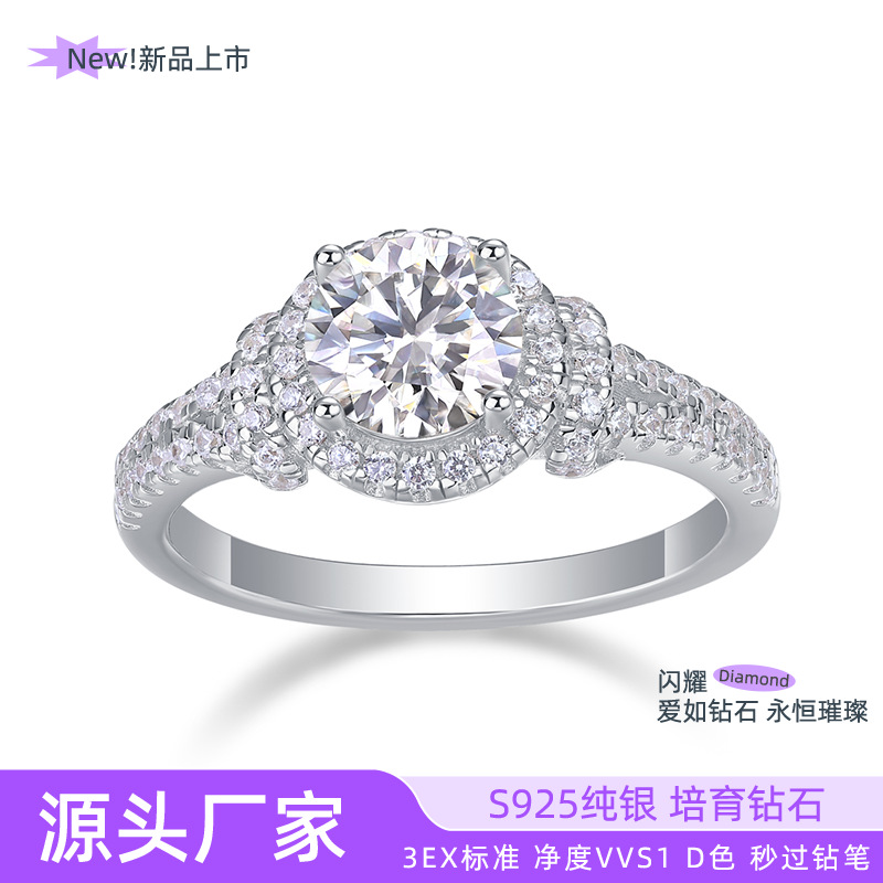 Памятное обручальное кольцо на солнечной энергии, серебро 925 пробы, 1.0 карат, инкрустировано бриллиантами, простой и элегантный дизайн