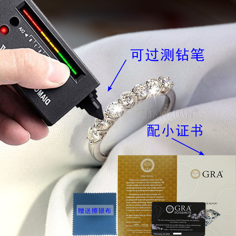 Модное и простое кольцо с бриллиантовым кольцом с 7-перепонку, кольцо стерлингового серебра 925, с сертификатом, проходной тест Diamond Pen D Color Mossan