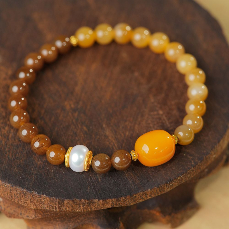 Изумрудный браслет из воскового агата из жемчуга из нефрита