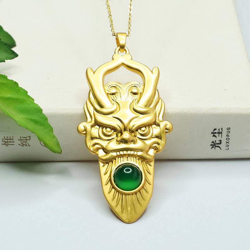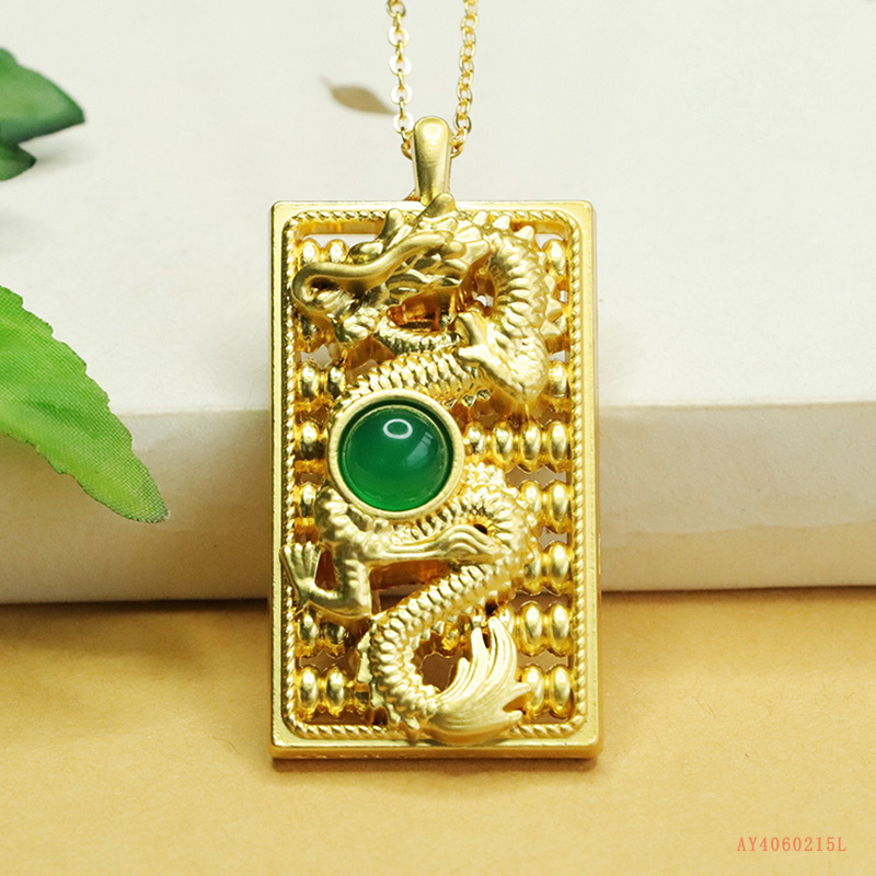 爱钰 Зеленый агат, яз -дракон головного подвесного подвесного льда зеленый халцедоний Зодиак Дракона Ожерелье Оптовое распределение AY4011909