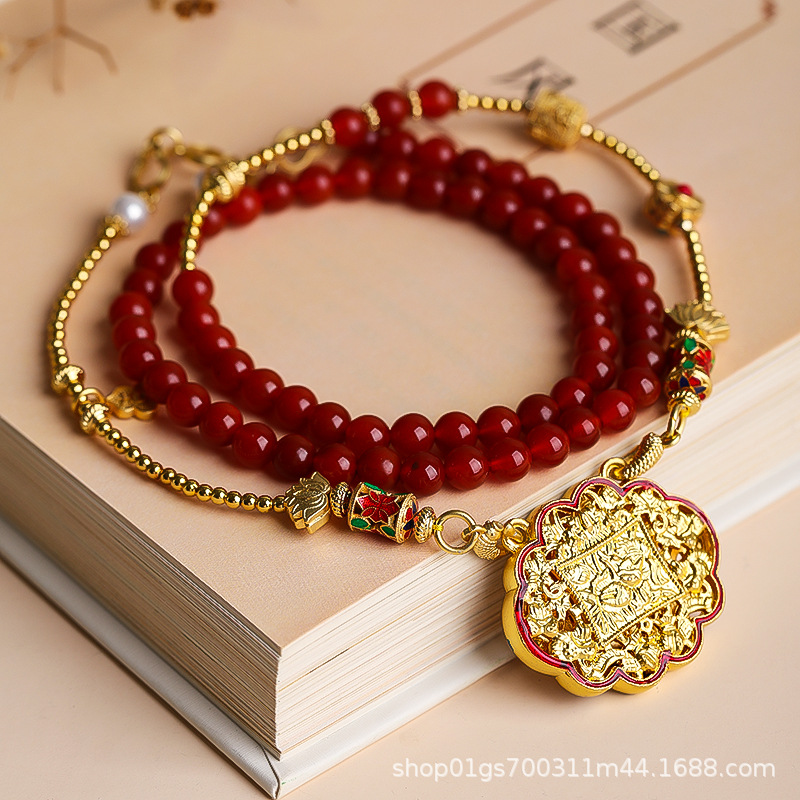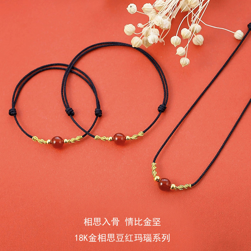 眷钰 Ониксовый браслет, ожерелье, плетеная подвеска, золото 750 пробы