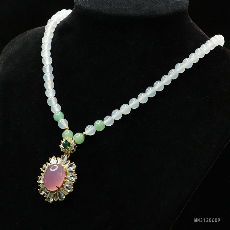 眷钰 Белое ожерелье из белого бинг -шопенка розовое шопенское свитер.