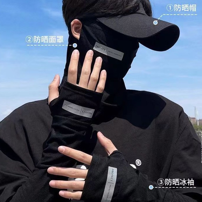 Шелковая маска для велоспорта, защитный рукав, альпинистская вуаль, солнцезащитная шляпа, комплект, защита от солнца, УФ-защита