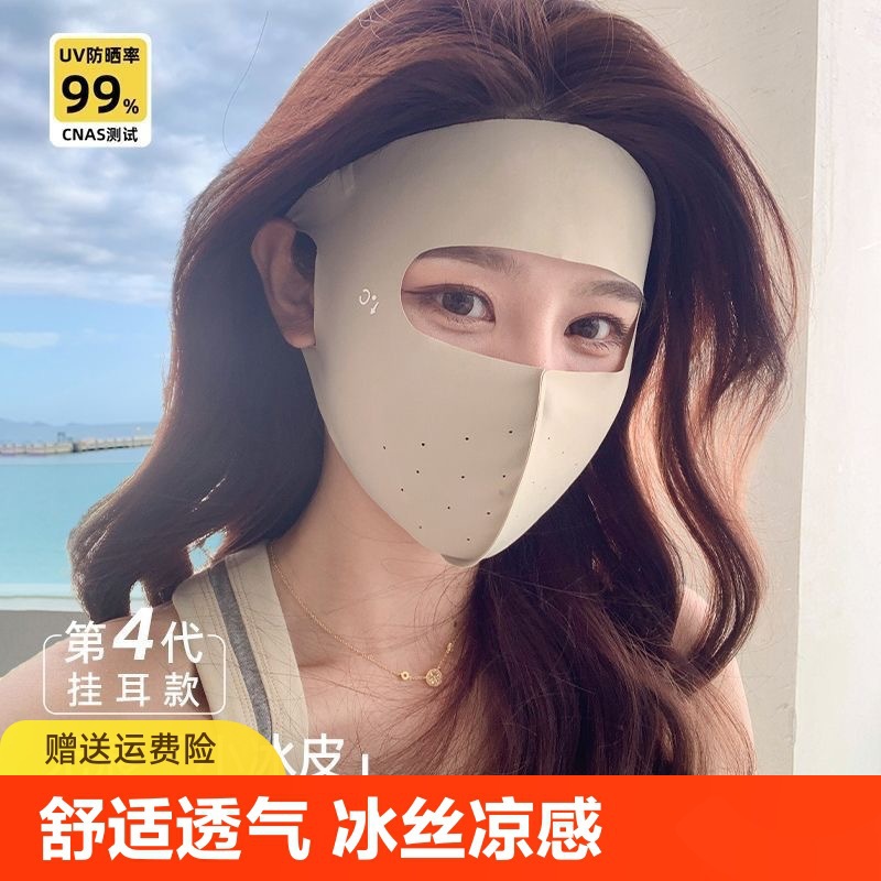 Дышащая шелковая летняя медицинская маска, большой размер, защита от солнца, УФ-защита, с защитой шеи, защита глаз
