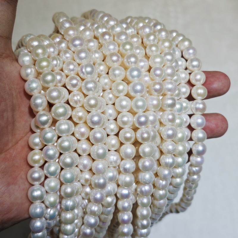 9-10 мм Чжуджи почти круглый и сильный легкий натуральный пресноводной жемчужный мяч Полуфанный браслет DIY DIY 8-9