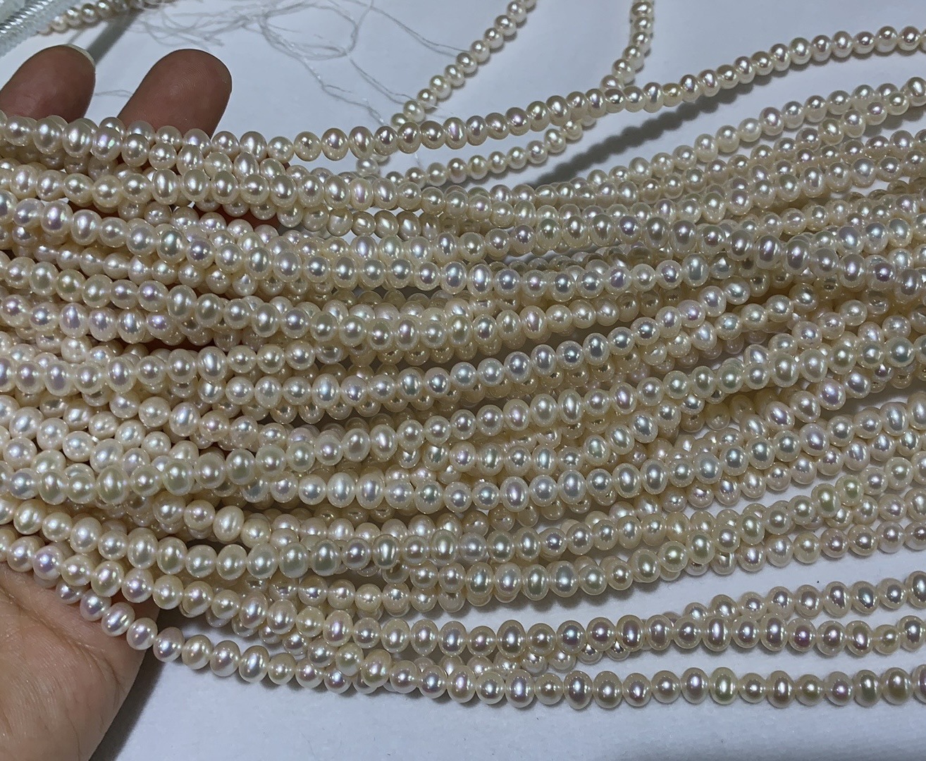 Без ядерного плавного 2,5-3 мм маленький картофель, натуральный пресноводный жемчуг, цепочка небольших ударов составляет около 38 см150 кусочков длиной