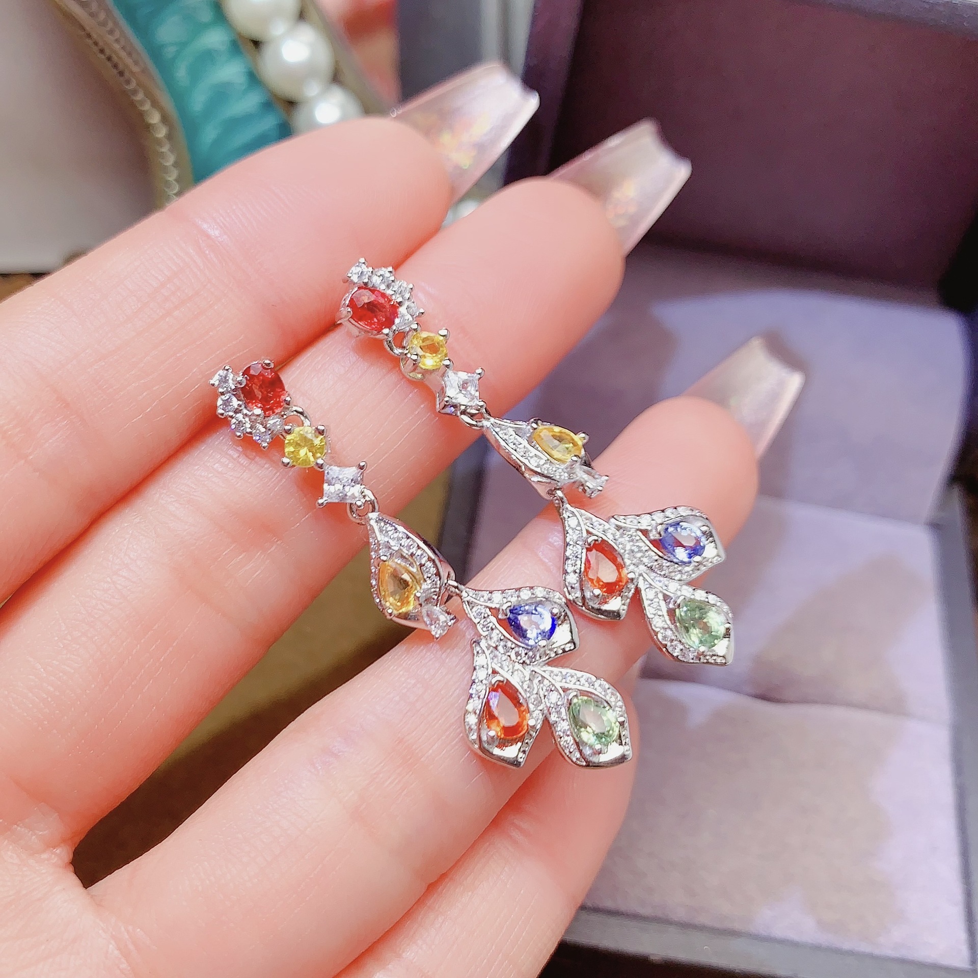 Натуральные серьги, инкрустация камня, оптовые продажи, серебро 925 пробы, европейский стиль