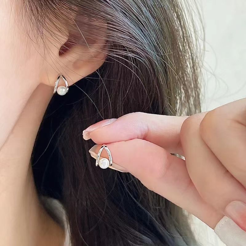 Изысканные небольшие дизайнерские серьги, серебряная игла из жемчуга, тренд сезона, изысканный стиль, легкий роскошный стиль