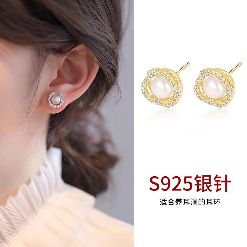 Свежие милые серьги из жемчуга, серебро 925 пробы, простой и элегантный дизайн
