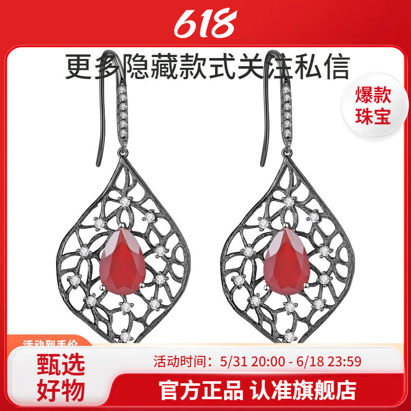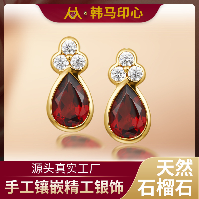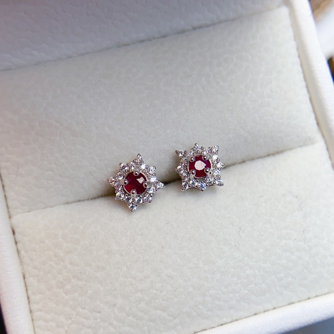 Натуральные рубиновые серьги, инкрустация камня, оптовые продажи, серебро 925 пробы, европейский стиль