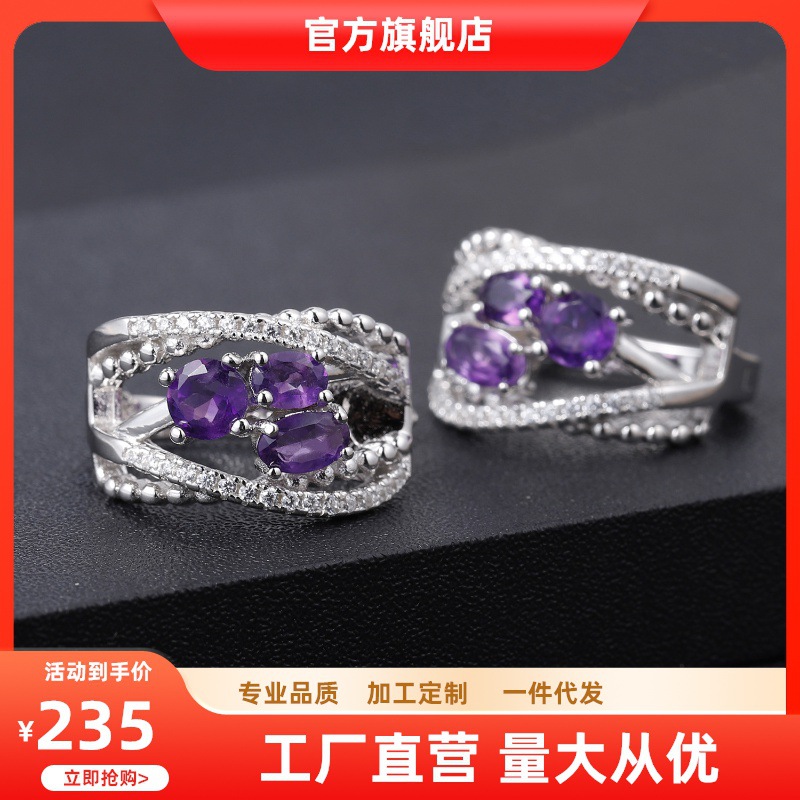 Модные серьги с кварцем с аметистом, аксессуар, европейский стиль